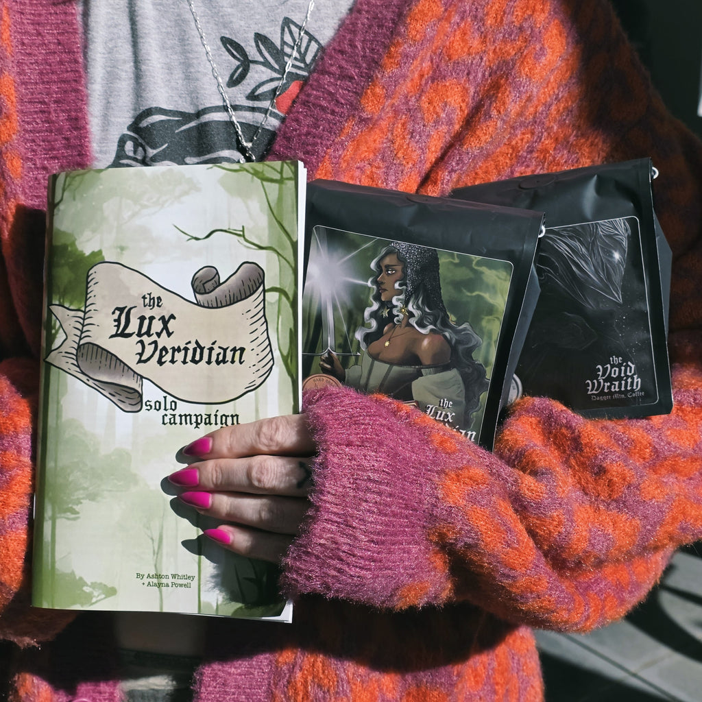 *Comes with a copy of the Lux Veridian solo campaign zine, and a D20 dice
