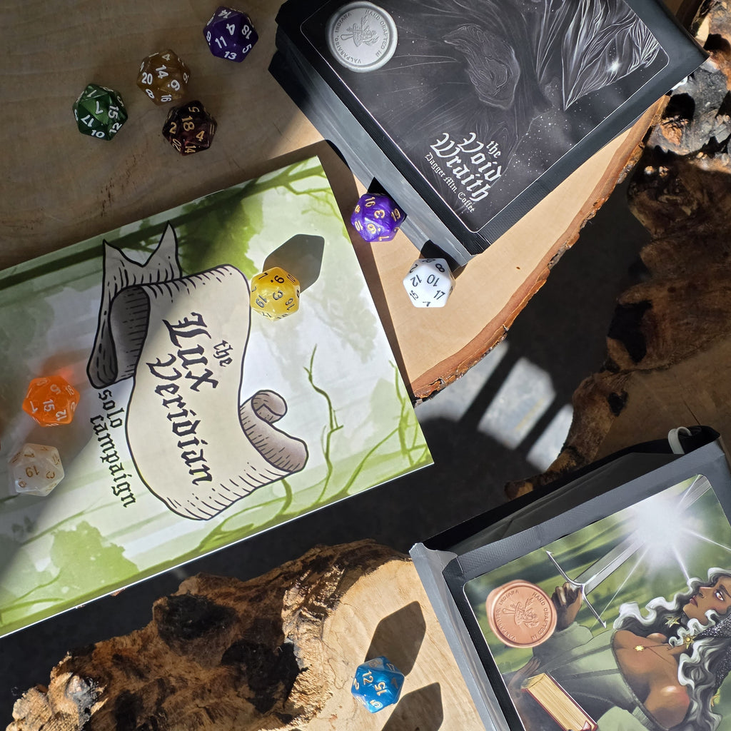 *Comes with a copy of the Lux Veridian solo campaign zine, and a D20 dice